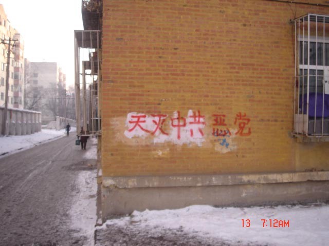 法轮大法明慧网 - 中国东北某县城出现大量真相标语和条幅
