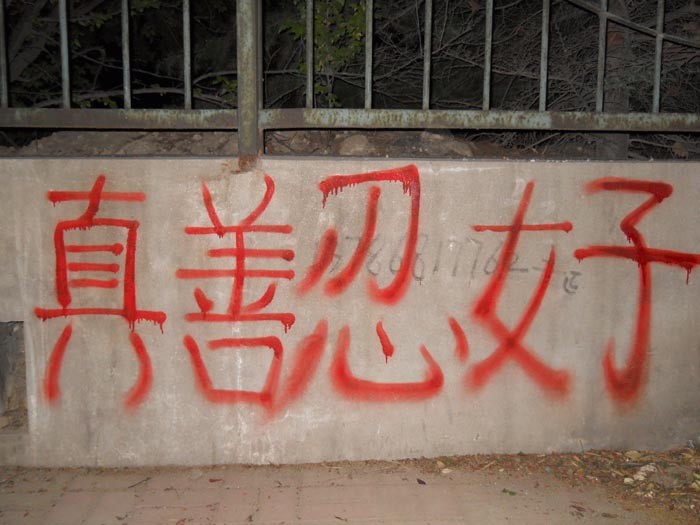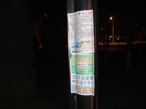 新年期间大陆北方城市出现法轮功及退党真相标语