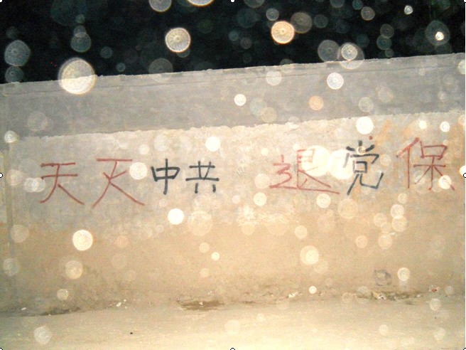 照片:河北保定法轮功学员在五月十二日夜写的真相标语