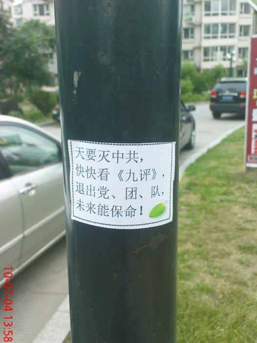 7.20前夕,山东济南市各街道、小区内出现法轮功真相不干胶