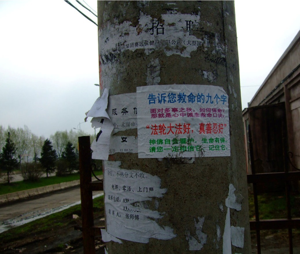 小城市电线杆上的真相传单,持续大半年依旧完好
