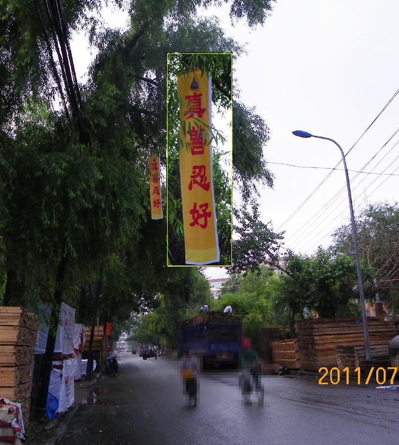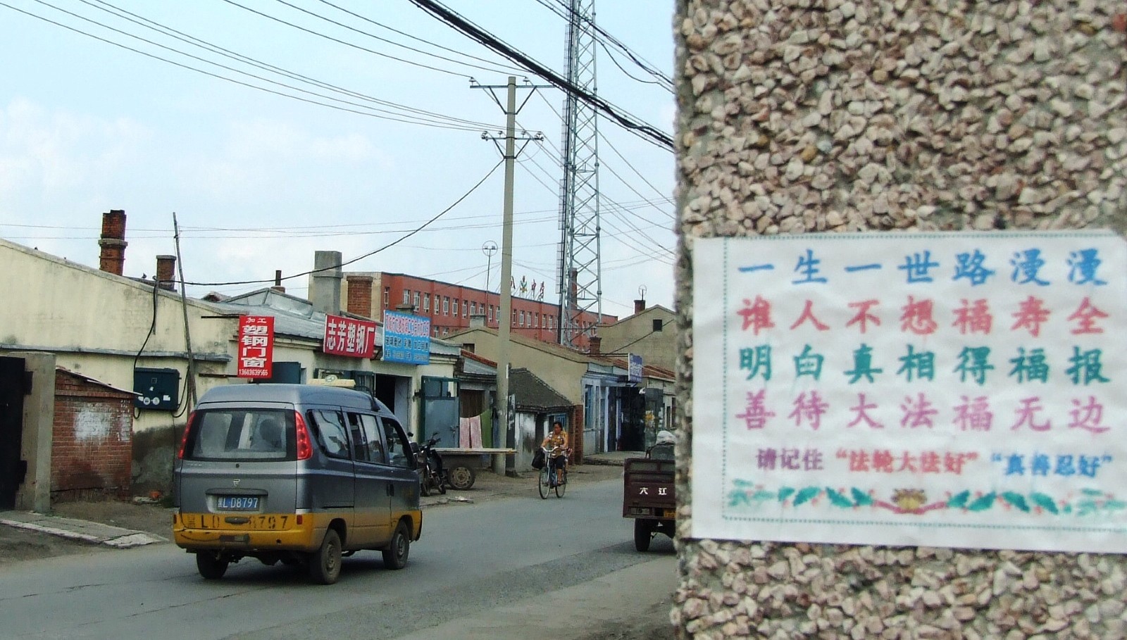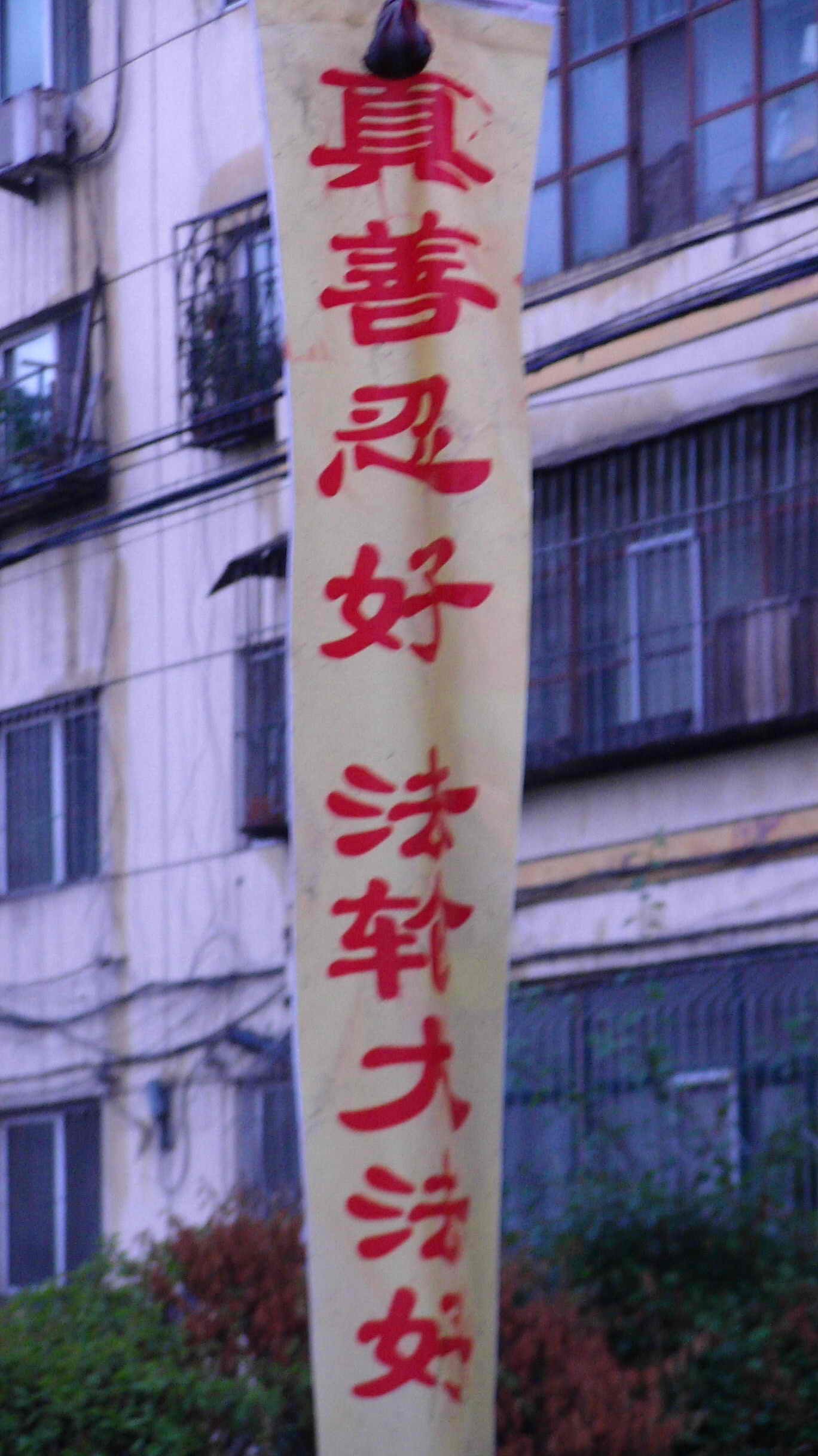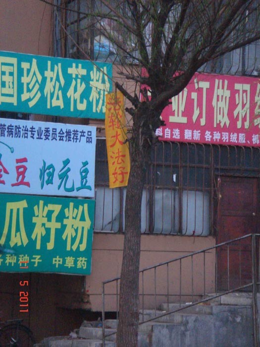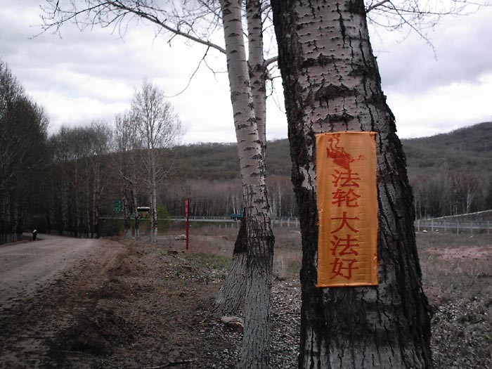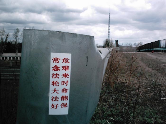 牡丹江小镇的“法轮大法好”条幅