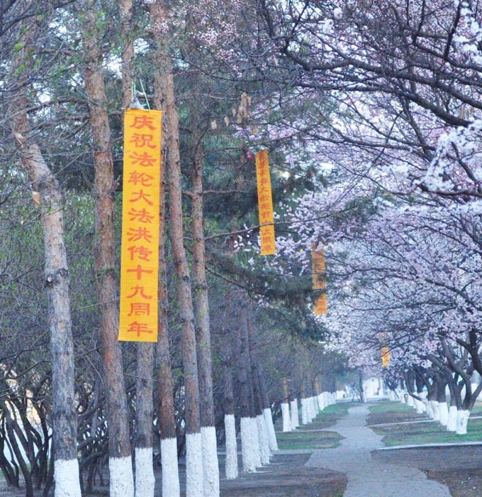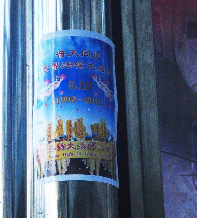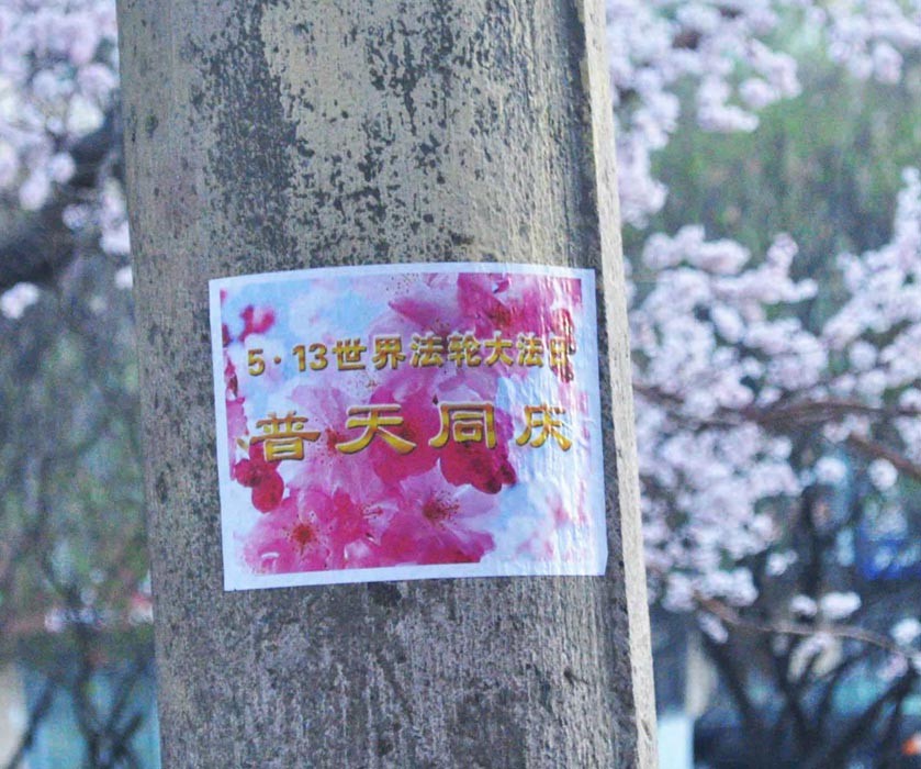 大陆各地庆祝世界法轮大法日的条幅粘贴