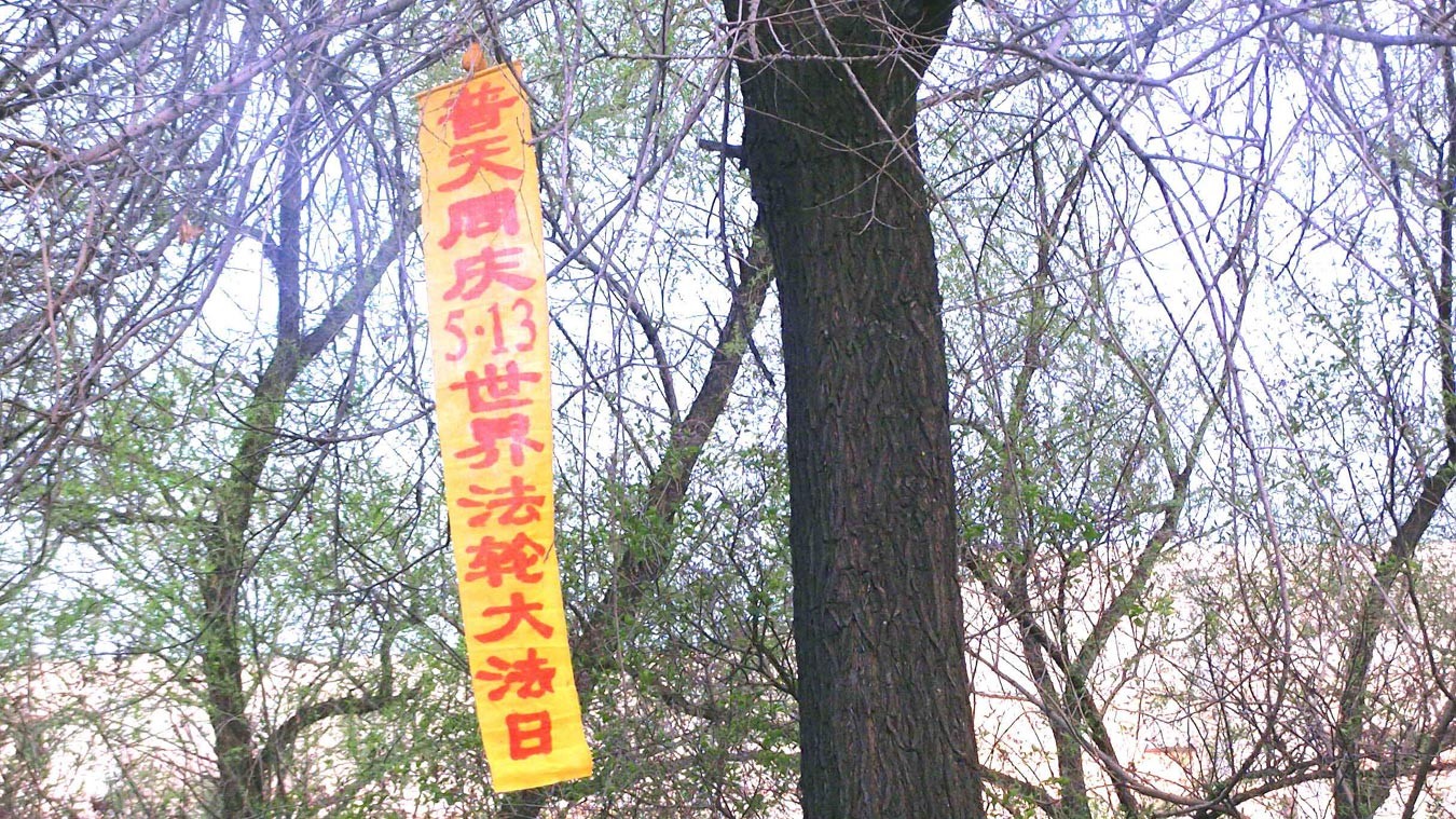 黑龙江某地街头庆祝“世界法轮大法日”条幅