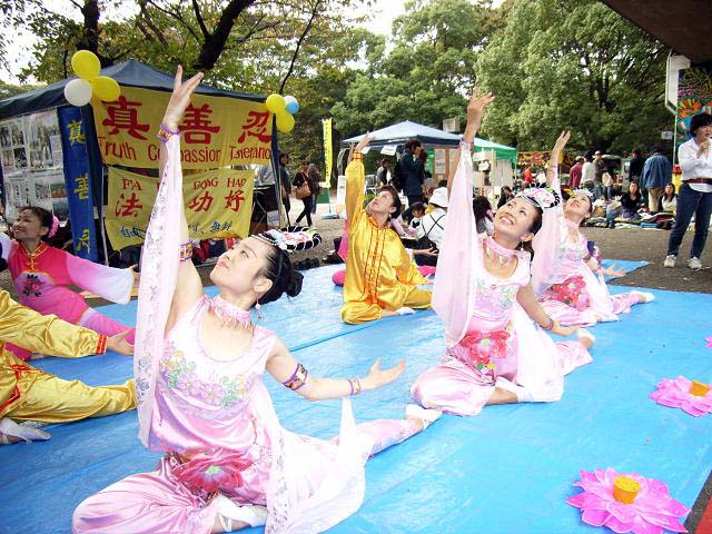 法轮功学员在东京社区活动中展现大法美好图为学员的舞蹈表演2007-6-3