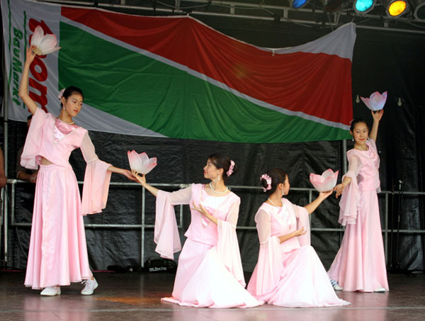法轮功学员参加德国Lindenau的社区庆祝活动图为舞蹈表演"莲花舞"2007-6-9