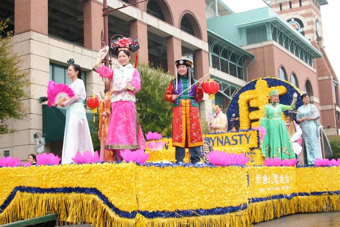 休斯顿马丁路德金大游行中的新唐人电视台的花车,向观众展示中国的传统文化 2007-1-15