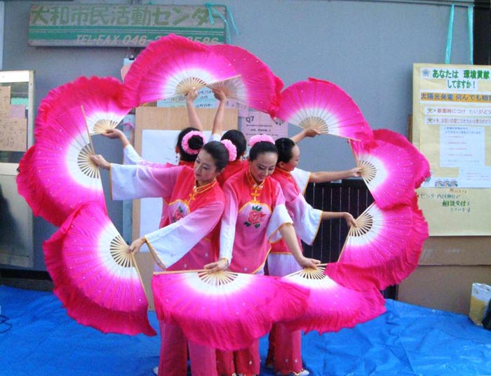 法轮功学员参加日本大和市民交流集会展示中国传统修炼文化图为学员表演的扇子舞2007-10-3至4