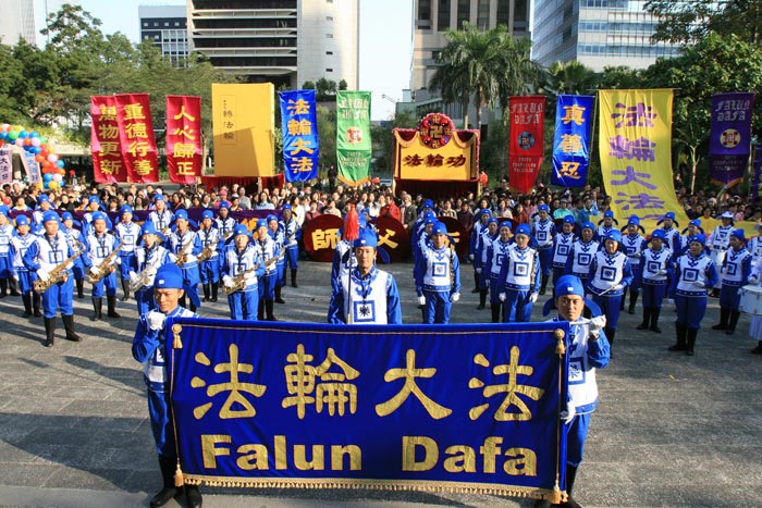 法轮功学员组成的「天威唐鼓队」应邀参加台湾高雄县议会举办艺文活动2007-5-26
