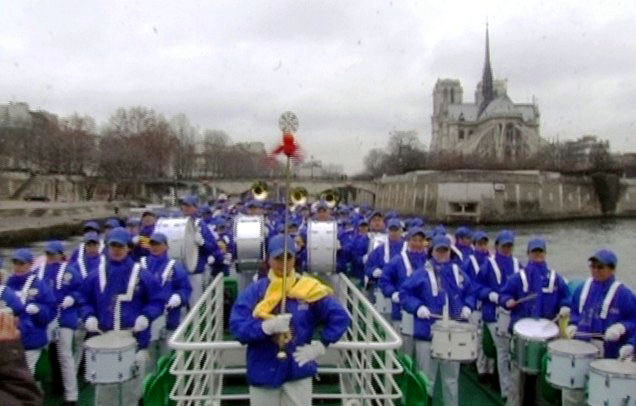 天国乐团在富有诗情画意的塞纳河游船上演奏把大法的美好带给法国人民和各地的游客2008-1-1