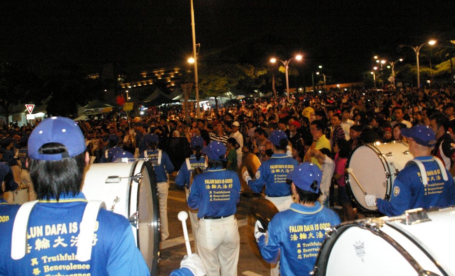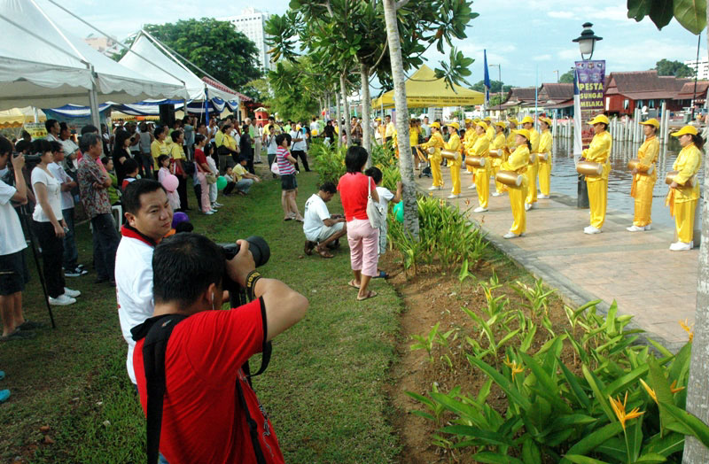 法轮功学员在马来西亚马六甲州系列嘉年华会的活动图为新加坡腰鼓队在马六甲表演2008-5-31至6-1