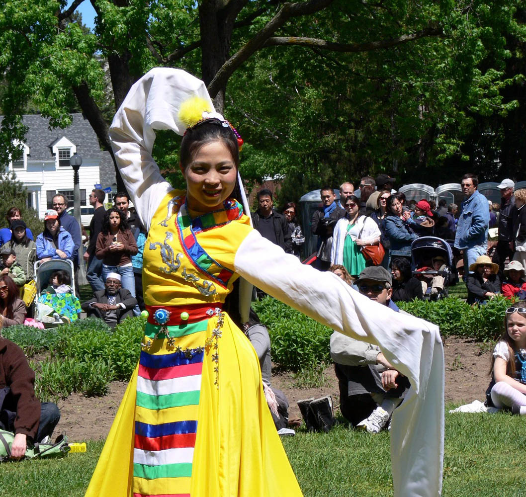 法轮功学员应邀参加奥克拉荷马州陀萨市亚洲节活动图为学员表演莲花舞2008-6-7