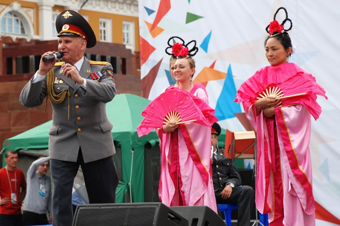第八届军事运动节庆祝活动主持人介绍法轮大法团体