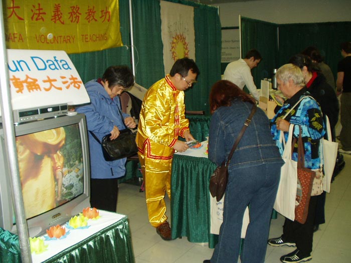学员在2005年温哥华健康博览会上介绍法轮功 2005-10-29--30