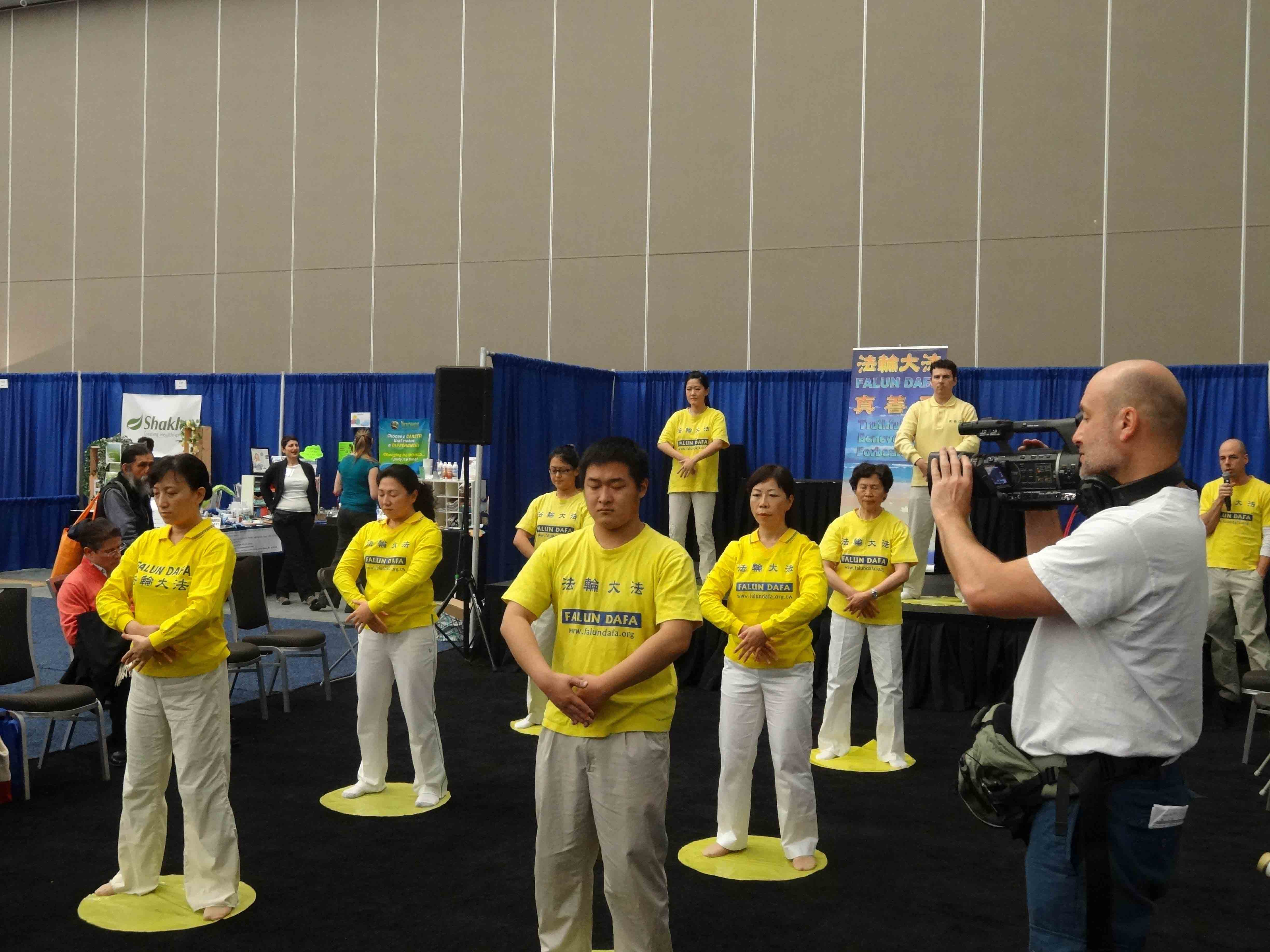 法轮功学员参加多伦多健康展,介绍法轮功在增进身心健康方面的独特效果