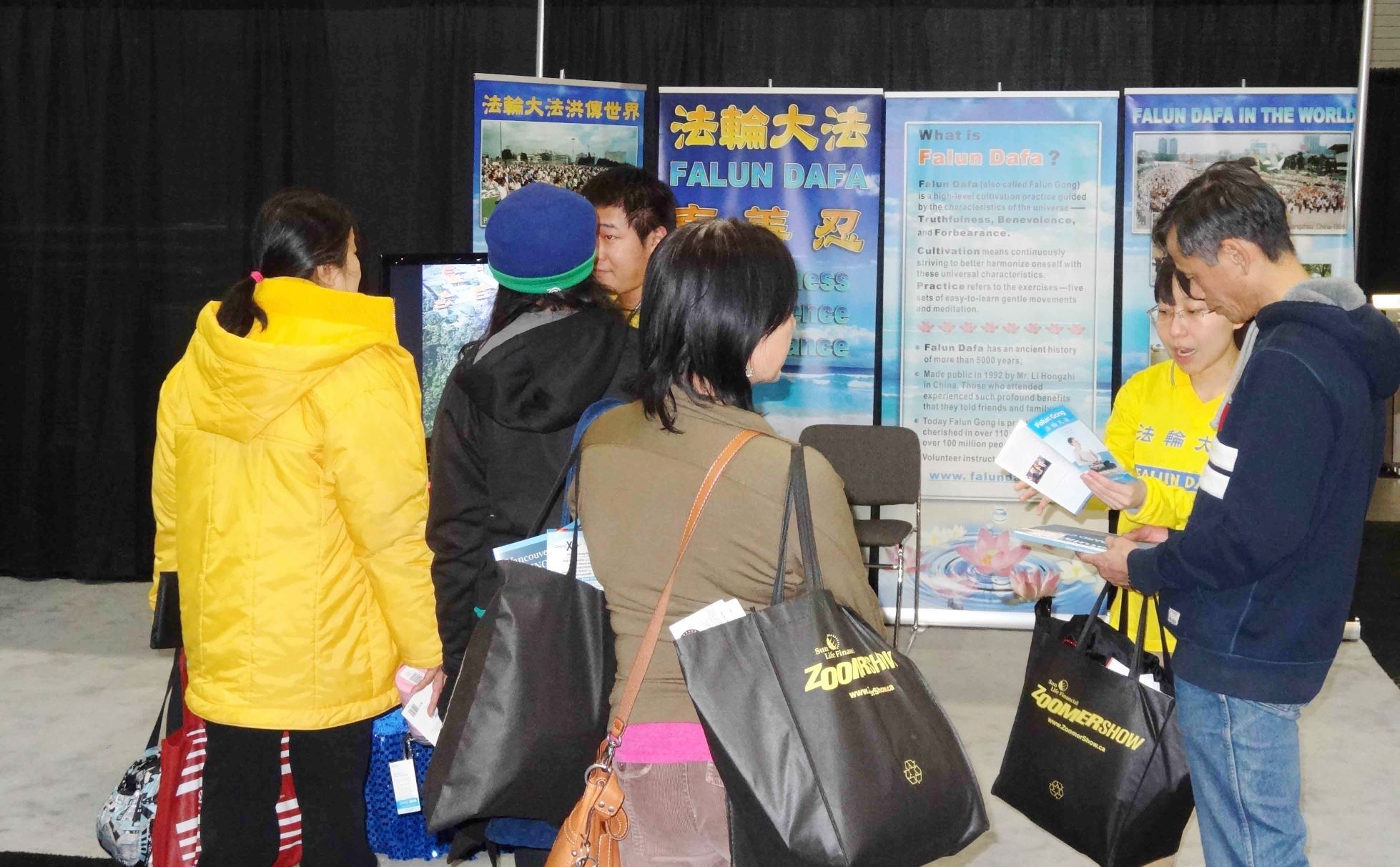 法轮功学员参加北美健康展 ,并大法的美好传播给民众