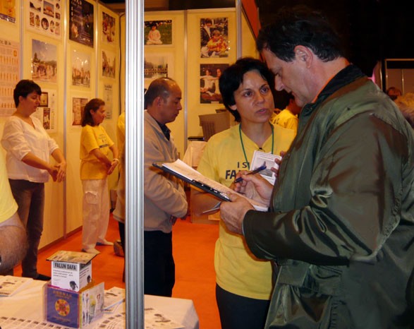 法轮功学员参加健康博览会,很多展会的访客签名反对中共迫害