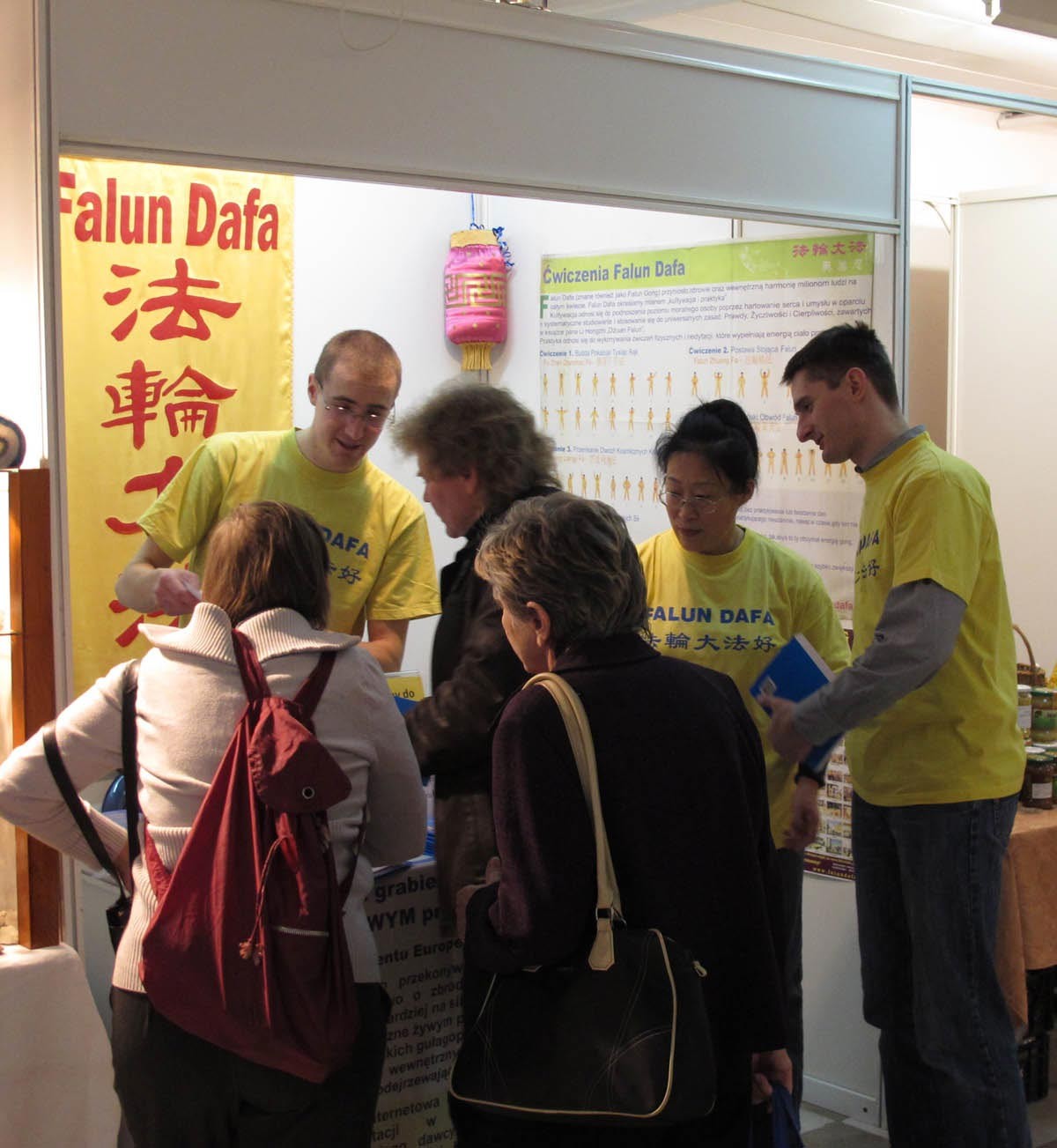 法轮功学员参加健康博览会,向民众介绍法轮功