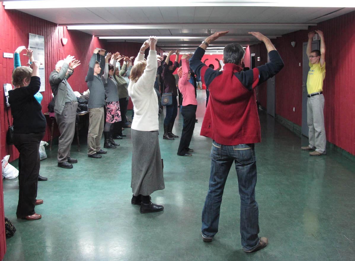 听了Huber先生的演讲后,又有人来到大厅学炼法轮功