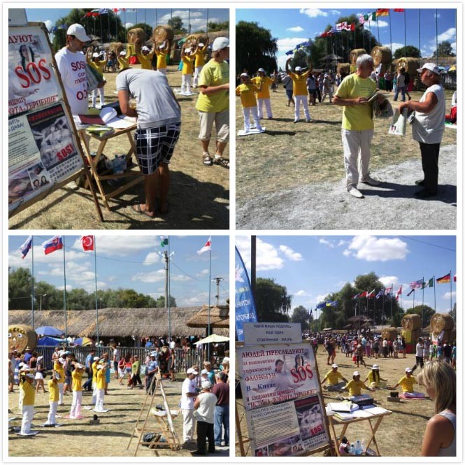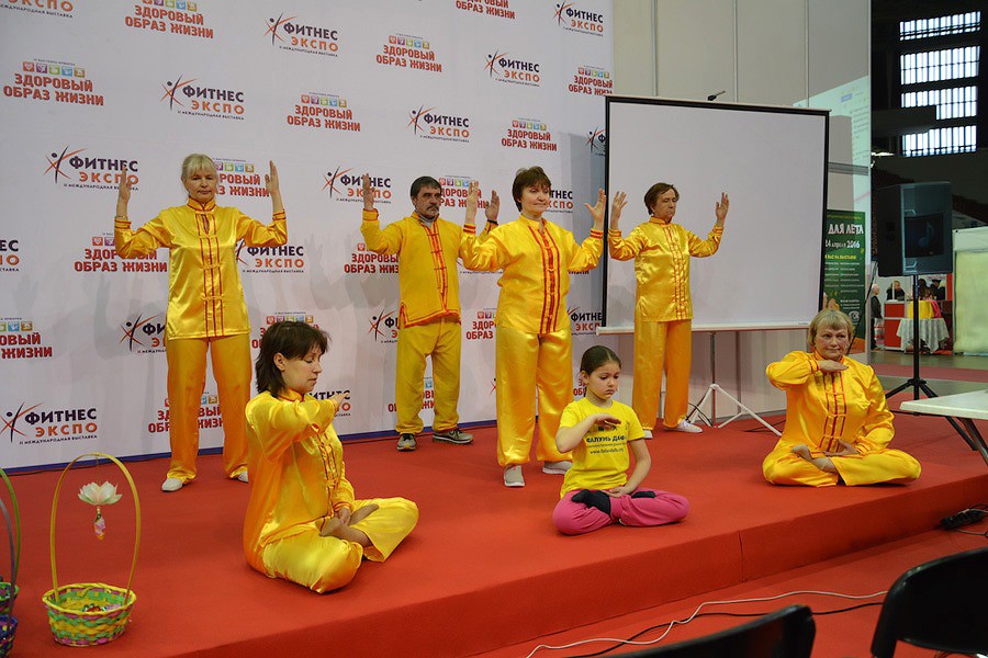法轮功学员受邀请参加俄罗斯的国际健康展,民众赞扬法轮功学员的友善