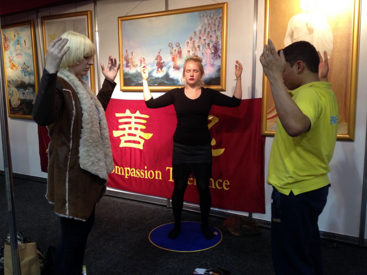 法轮功参加爱尔兰“身心灵健康展”民众当场学功
