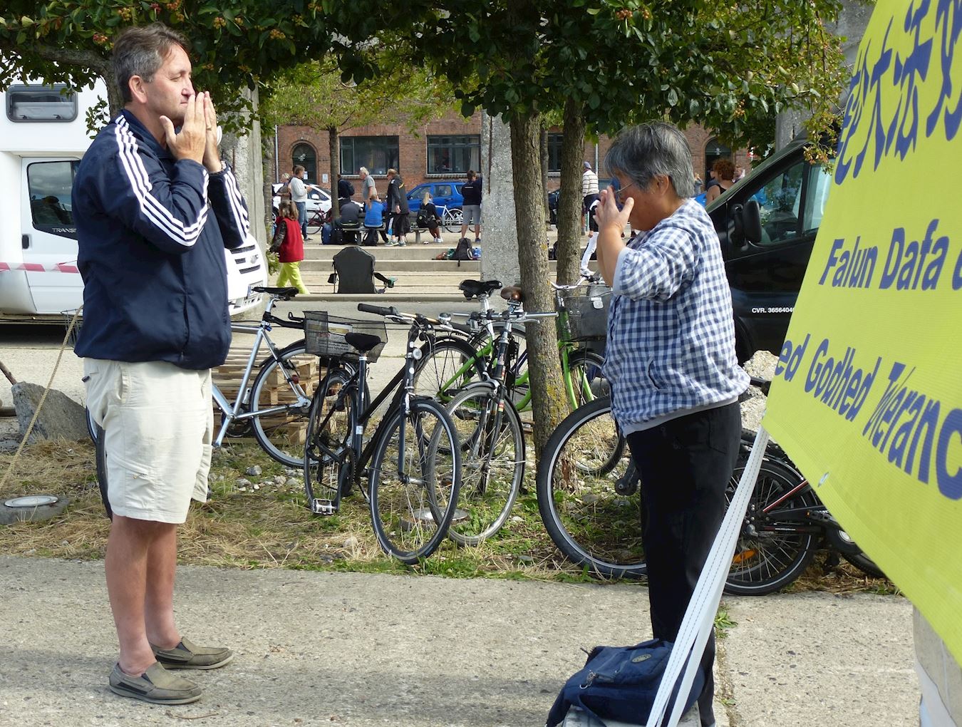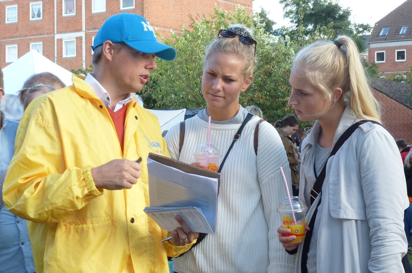法轮功学员参加奥登塞市健康博览会,了解真相后当场学炼法轮功