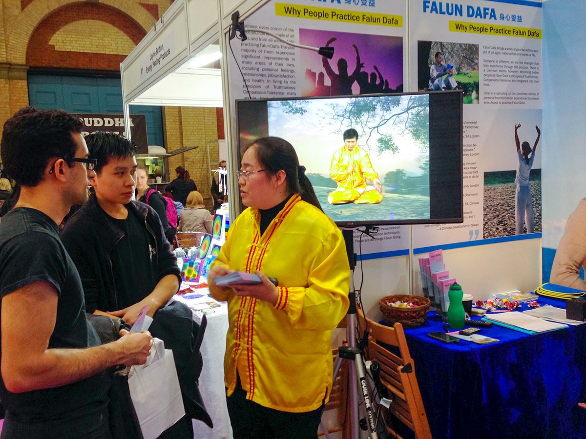 法轮功学员参加伯明翰NEC中心举行“身心灵健康节”展示法轮大法的美好