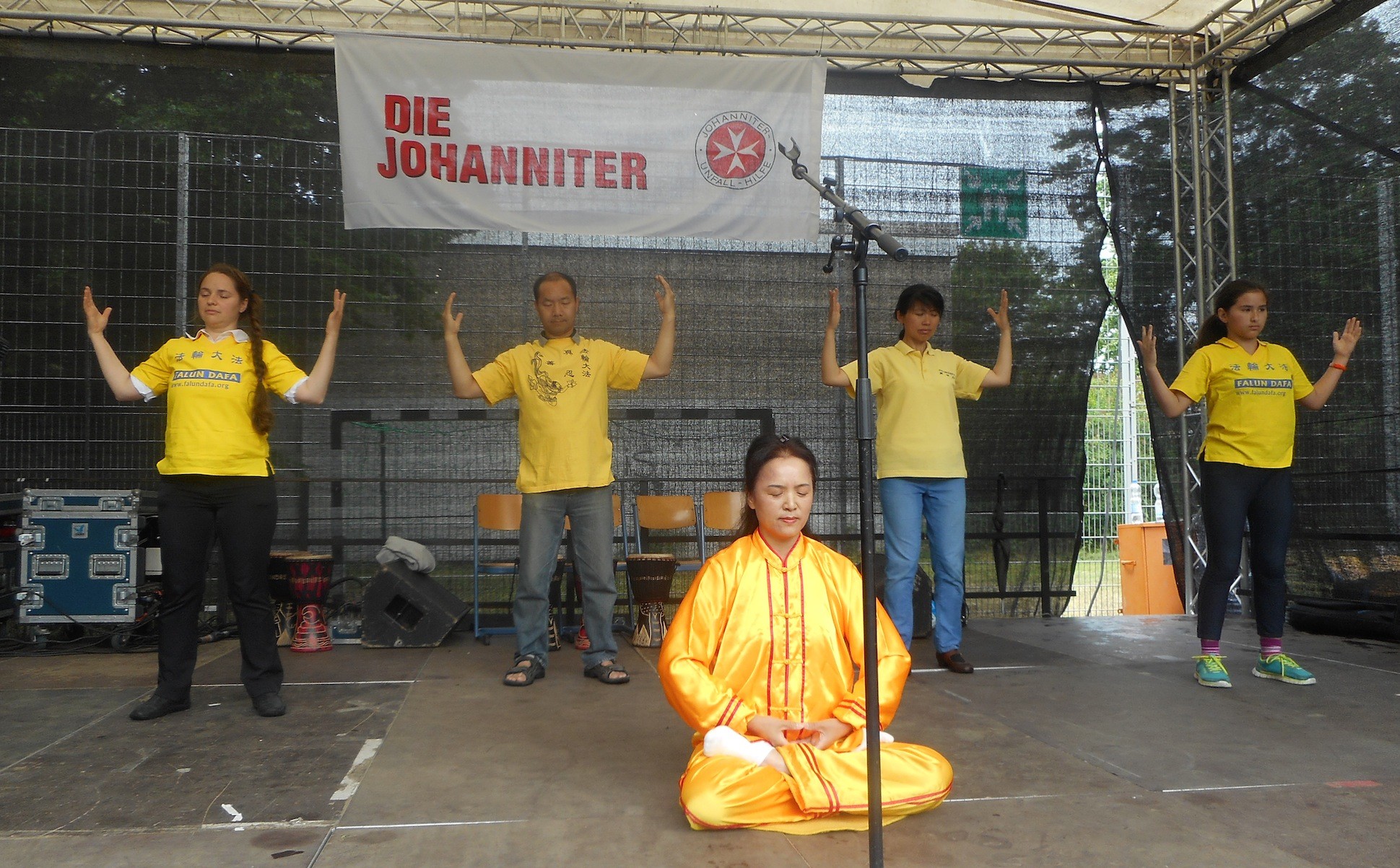德国吕嫩市文化节,法轮功团体获奖图为德国吕嫩市文化节,法轮功学员在舞台上功法展示