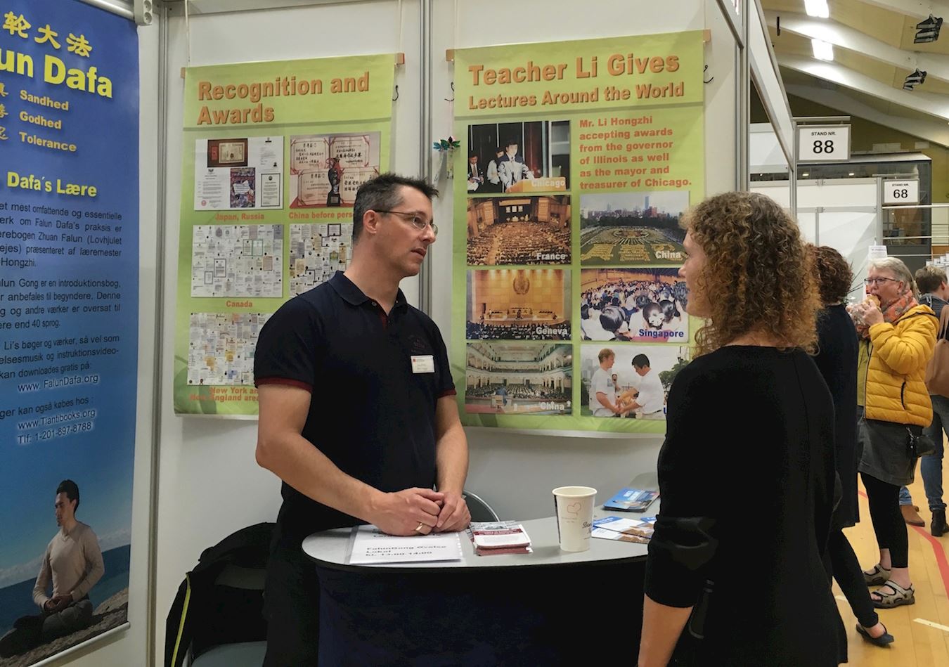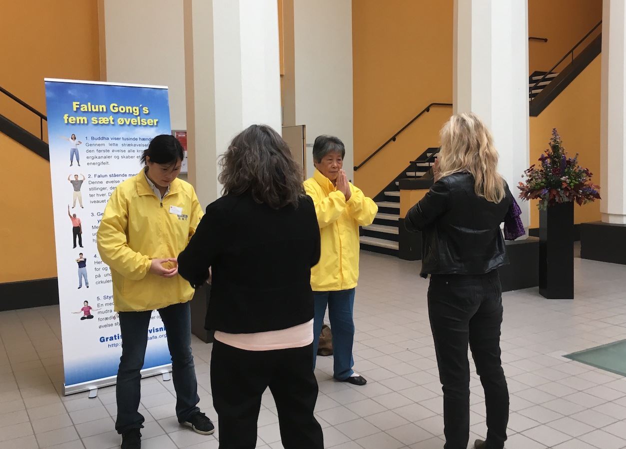 法轮功学员参加哥本哈根健康博览会,人们了解真相并学炼功法