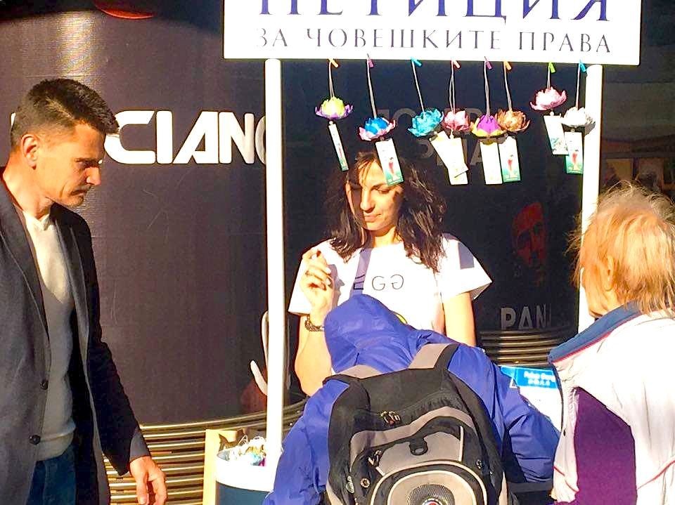 法轮功学员参加健康博览会,民众签名反对中共迫害
