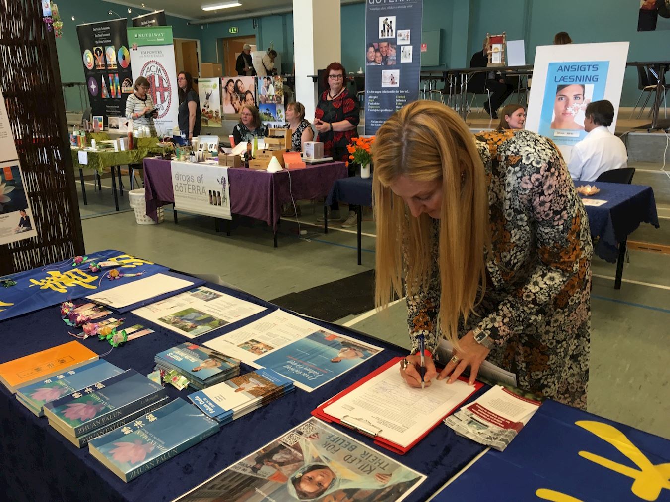 法轮功学员参加奥登塞市健康博览会,了解真相后的人纷纷签名