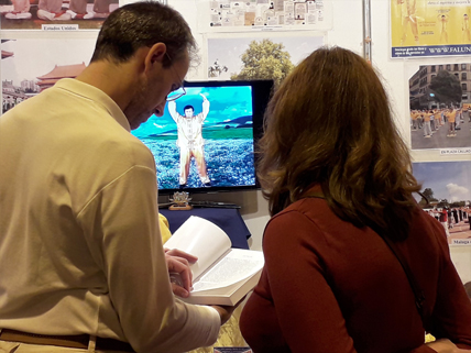 法轮大法在马德里健康博览会,被优美的音乐所震撼并学炼功法