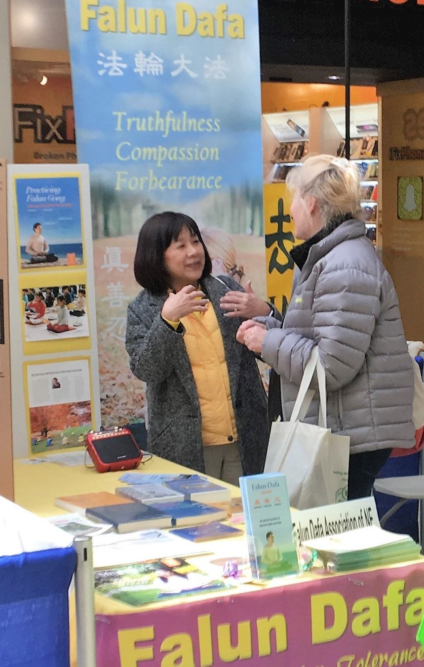 Published on 4/10/2018 法轮功,波士顿健康博览会 法轮功展位迎来有缘人 【明慧网】