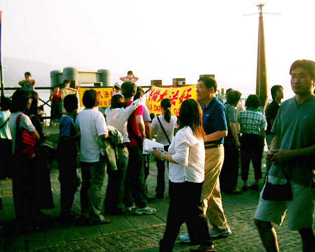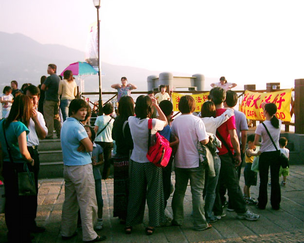 法轮功学员在香港旅游景点向被江氏集团谎言蒙蔽的大陆同胞讲真相