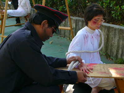 日本首次真人模拟反酷刑展,在东京都江东区南砂町公园举行