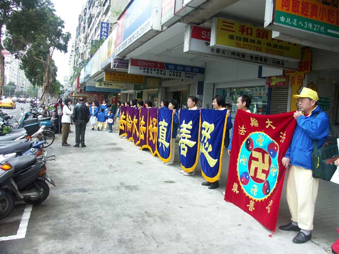 台湾学员筑正义长城 向路人讲真相 呼吁制止中共对法轮功学员的残酷迫害