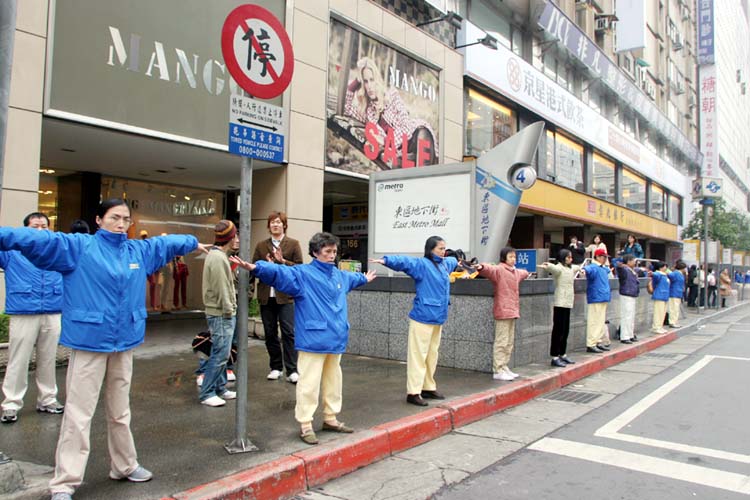 台湾学员在忠孝东路商圈筑正义长城 呼吁制止中共江氏集团灭绝迫害