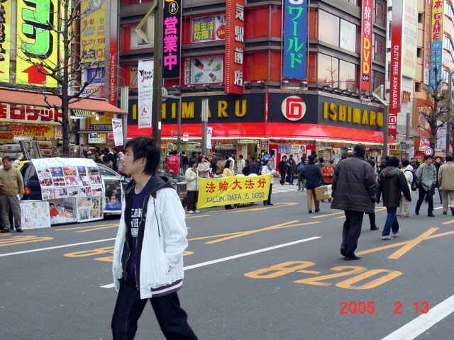 日本法轮功学员秋叶原电器街向日本民众及大陆旅游团讲真相