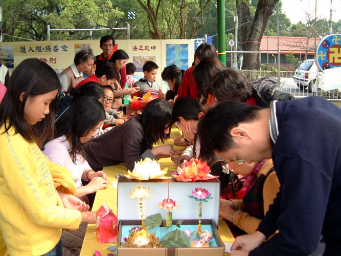 台湾法轮功学员南投县儿童公园内举办洪法活动 图为制作纸莲花