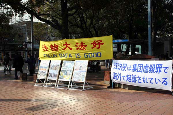 爱知万国博览会期间日本法轮功学员活跃名古屋 图为放在街头的展板