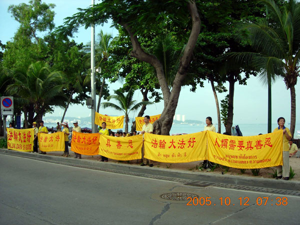 泰国法轮功学员在著名旅游景点芭提雅洪法讲真相