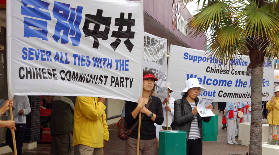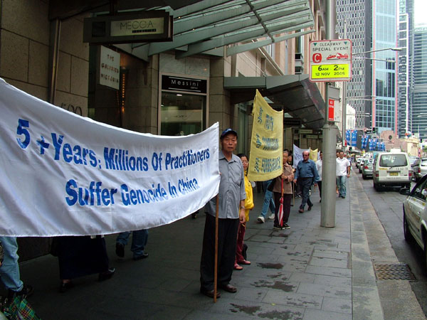 张德江被起诉 澳联邦警察接受迫害官员名单 法轮功学员在悉尼市中心的希尔顿酒店门前及对面举行勇气长城活动