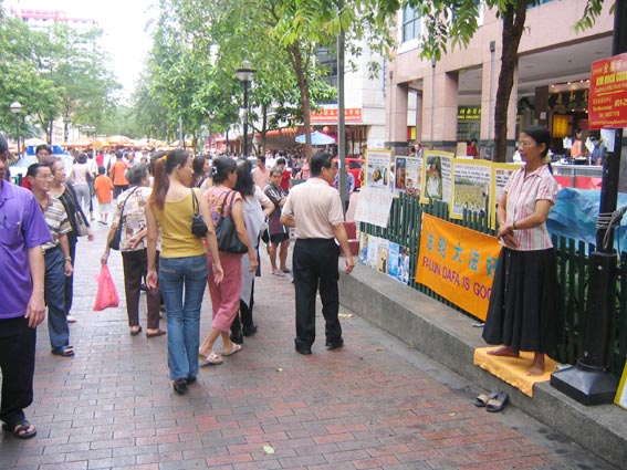 法轮功学员在新加坡闹市区坚持讲真相