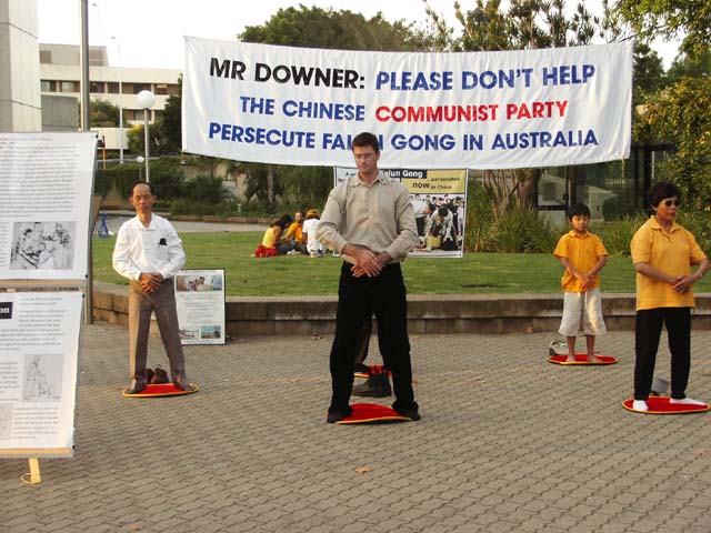 澳洲堪培拉法轮功学员在小镇葵必艳市洪法讲真相 图为功法演示