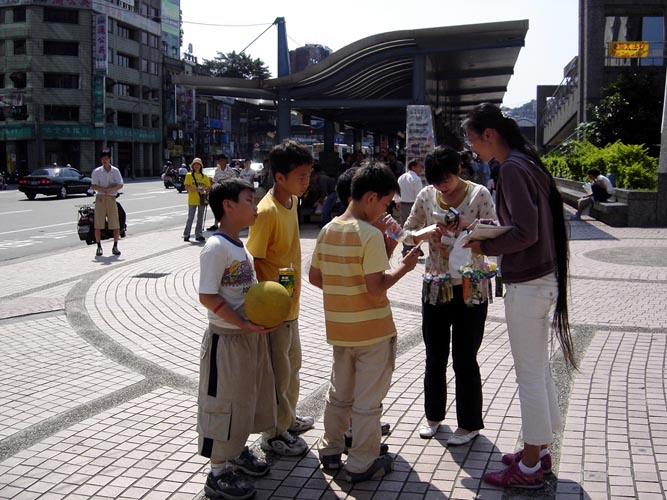 法轮大法洪传台湾:宜兰学员在国际童玩艺术节讲真相2004-8