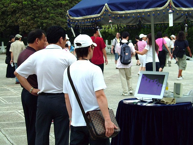 台湾学员在中正纪念堂广场前排组法轮图形,并向民众讲真相,民众吁早日制止迫害 2005-12-25