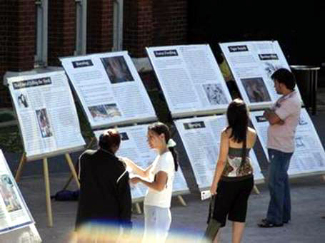 澳洲学员举办酷刑图片展向观众讲解发生在中国对法轮功的惨烈迫害2006-1-22