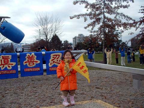 温哥华学员在加拿大基隆娜(Kelowna)市洪法,图为参加活动的小学员