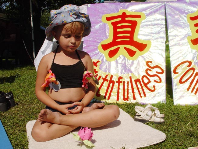 明慧学校的小弟子们在多伦多国际龙舟节炼功洪法讲真相,民众当场学功