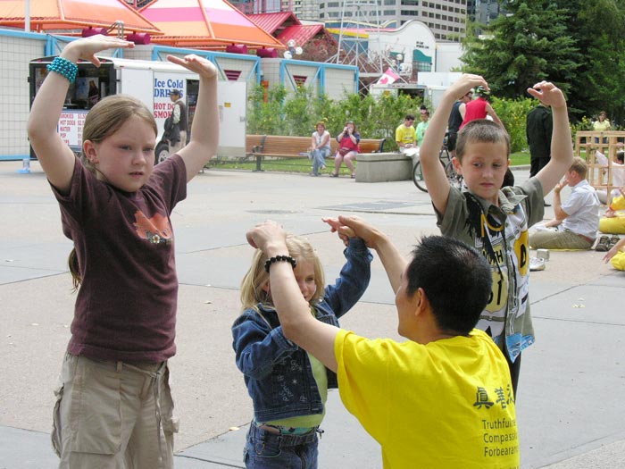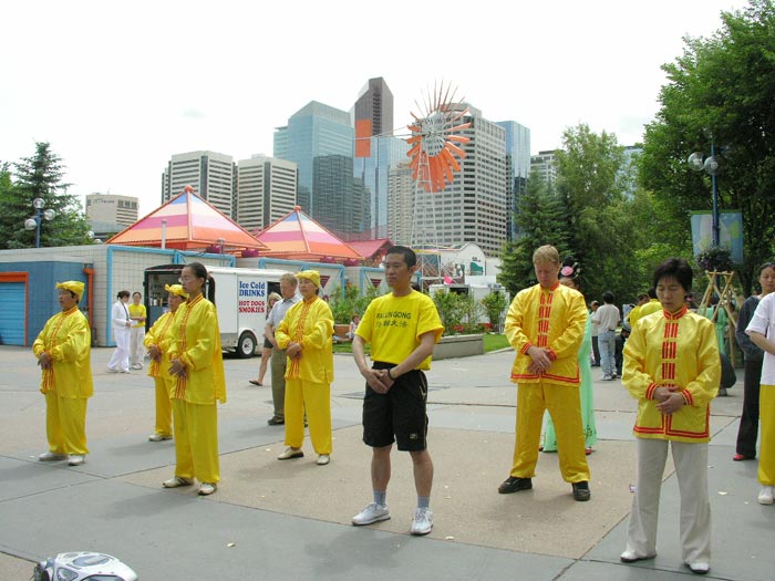 卡尔加里学员国庆日在公园洪法讲真相 图为五套功法演示2006-7-1